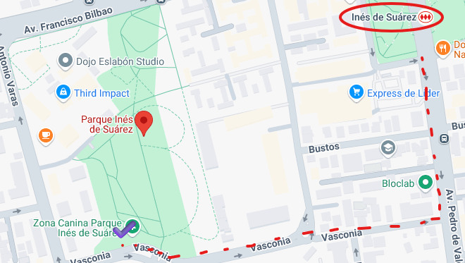 DIRECCIÓN: Parque Inés de suaréz, Vasconia 1523, Providencia (a pasos del metro Inés de Suárez).